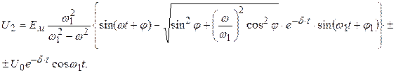 Из (8.11) следует, что напряжение растет колебательным образом с постепенно нарастающей амплитудой, в пределе достигающей величины установившегося напряжения, которое во много раз превосходит э.д.с. источника и равно