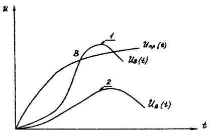 Рис. 8.11. Кривые восстанавливающейся прочности (Uпр) и напряжения на выключателе (кривые 1 и 2) от времени.