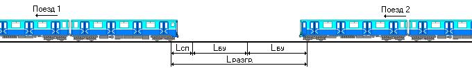 Рис.3 Расстояние между поездами при АРС-АЛС без автоблокировки.