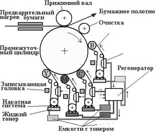 Примерно с 1993 г. реализованы различные варианты многокрасочной печати с использованием ионографии на жидких тонерах. На рис. 13.4 приведены два варианта печатных секций планетарного построения.