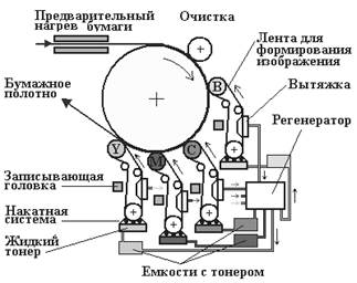 Рисунок 13.4 – Схемы планетарного построения цифровой многокрасочной печатной системы на основе ионографии