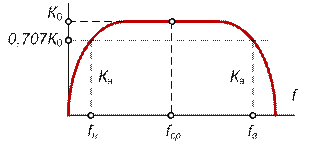 где Мн и Мв─ коэффициенты частотных искажений на нижних и верхних граничных частотах соответственно; Кн и Кв─ коэффициенты усиления на нижних и верхних частотах соответственно; К0─ коэффициент усиления на средних частотах.