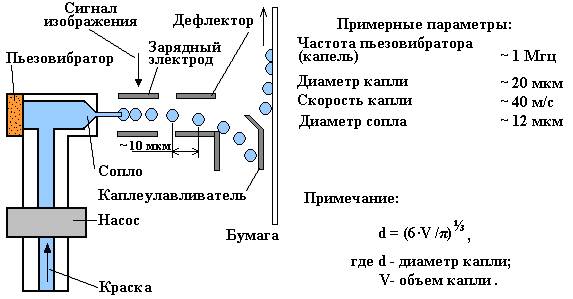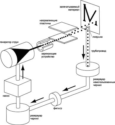Современные устройства каплеструйной печати с непрерывной подачей чернил содержат обычно следующие основные узлы: