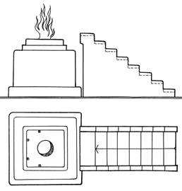 Рис. 9.2. Святилище огня пирефий (по Страбону); алтари (жертвенники огня) в Сехнэ (Мидия) и Пасаргадах (Персида)