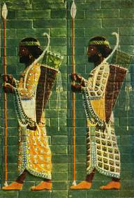 В парадных дворцах Персеполя и Суз были также использованы керамические фризы с изображениями шагающих быков и львов (опыт Ассирии и Нового Вавилона), фигуры шагающих воинов и данников – собственный опыт Ирана (рис. 9.17).