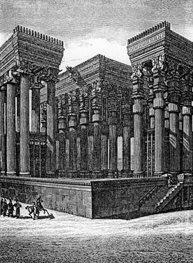 Рис. 9.18. Древнеиранские колонны: руины ападаны Дария I в Персеполе; дворец Ксеркса (реконструкция Шипье)