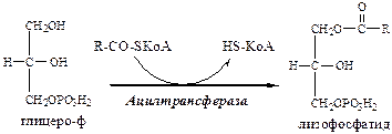 10. В митохондриях глицерофосфат под действием глицеролфосфат ацилтрансферазы превращается в лизофосфатид: