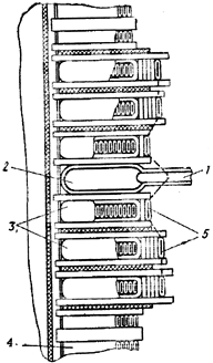 1 - отводу; 2 - емкостное кольцо;3 - входные катушки с дополнительной изоляцией; 4 — катушки без дополнительной изоляции; 5 - экранирующие витки емкостной защиты