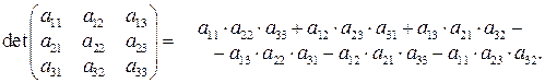 Приведем формулы для вычисления определителей 1, 2, и 3 –го порядков: