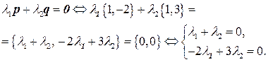 равны нулю) линейная комбинация, равная нуль-вектору: