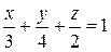 Все коэффициенты в уравнении отличны от нуля, поэтому удобно преобразовать его к уравнению в отрезках: