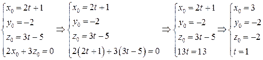 Чтобы решить систему, предварительно приведем уравнение прямой к параметрическому виду: