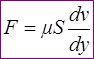 В соответствии с законом Ньютона сила внутреннего трения между слоями пропорциональна площади и градиенту разности скоростей слоев по толщине