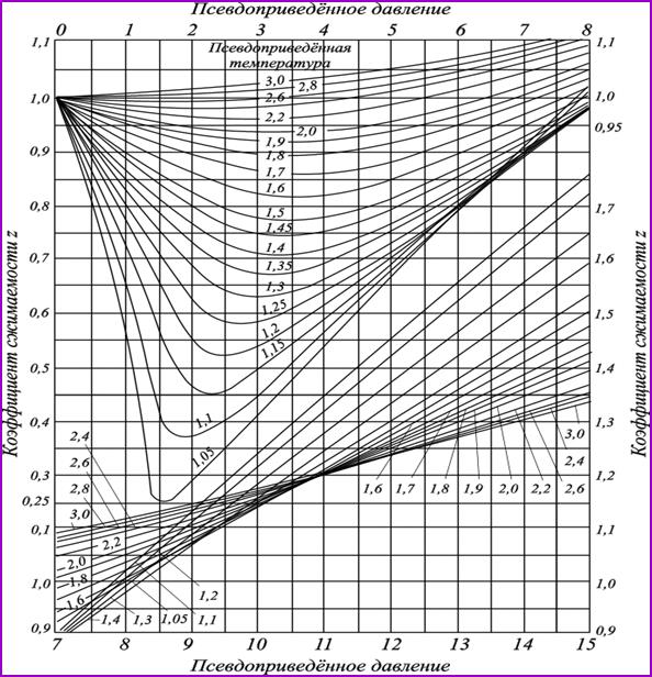 По принципу соответственных состояний термодинамические свойства веществ (в том числе и коэффициенты сжимаемости различных газов), имеющих равные