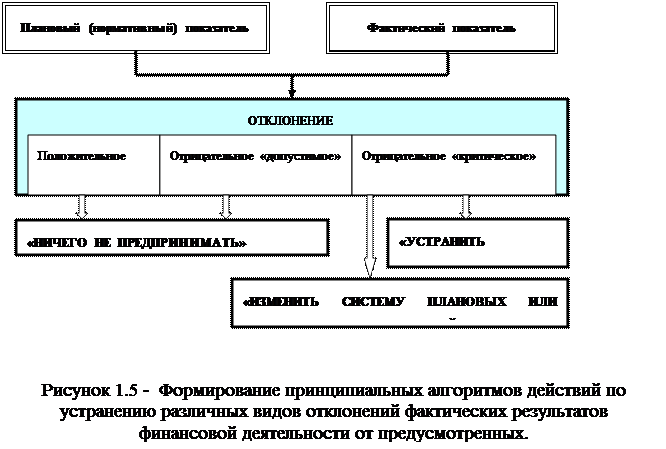 6.Формирование системы алгоритмов действий по устранению отклонений является заключительным этапом построения финансового контроллинга на предприятии. Принципиальная система действий менеджеров предприятия в этом случае заключается в трех алгоритмах (рис. 1.5):