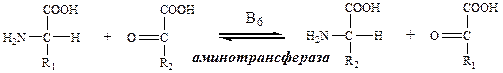 | Реакции катализируют аминотрансферазы, коферментом которых служит пиридоксальфосфат (ПФ) — производное витамина В6 (пиридоксина). |