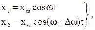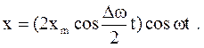 где Dw << w, результирующее колебание является гармоническим с пульсирующей амплитудой. Такие колебания называются биениями.