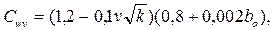 Коэффициент, учитывающий скорость ветра Cwv, определяем по п.2.8. [2], по формуле