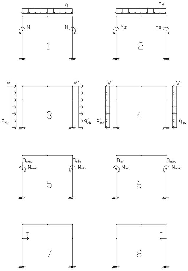 Статический расчет необходимо выполнять по соответствующим программным комплексам с использованием электронно-вычислительной техники (расчет рам производится по плоскостной схеме). Для упрощения расчетов рекомендуется использовать симметрию систем.