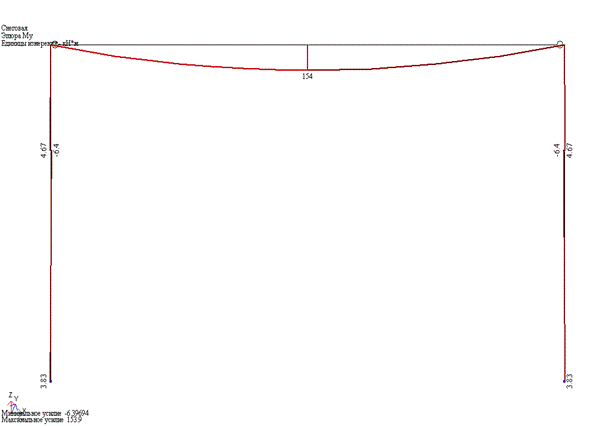 Рис. 6.6. Эпюра моментов от снеговой нагрузки