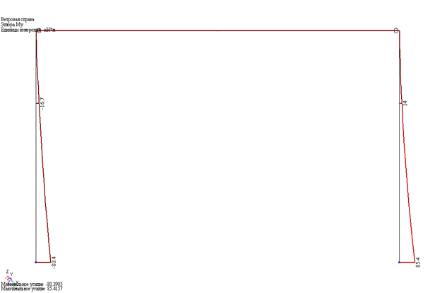 Рис. 6.7. Эпюра моментов от ветровой нагрузки слева
