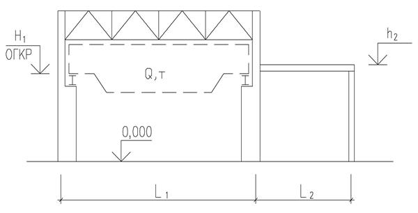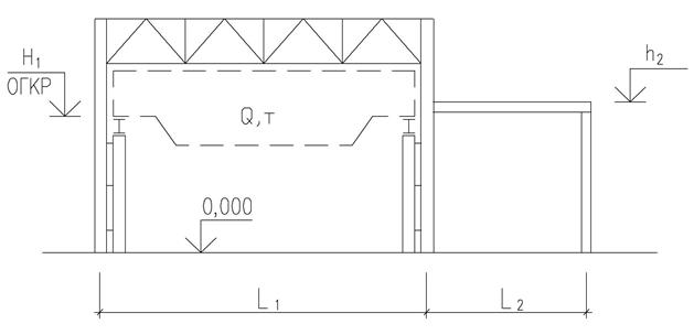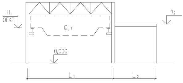 Длина здания (В) принимается равной 4L, где L – пролет основного здания.