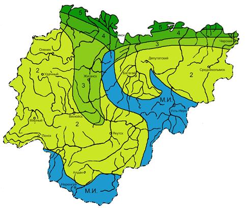 Районирование территории РС (Я) по нормативному давлению ветра.