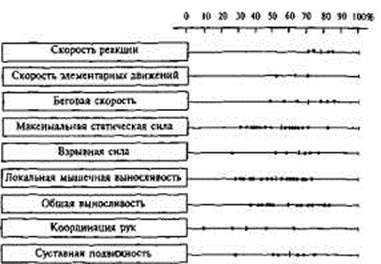 Как свидетельствуют суммарные данные по нескольким исследованиям [169], наибольшее влияние наследственности испытывает скорость реакции, наименьшее — координация рук (рис. 11.1).