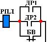 (в схеме указаны их контакты):