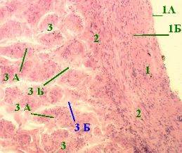 в его толще - тонкий слой рыхлой волокнистой соединительной ткани (4.Б),