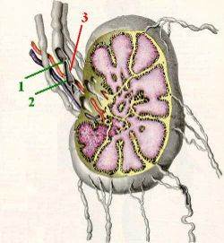 | Рисунок - лимфатические сосуды и лимфоузел.
