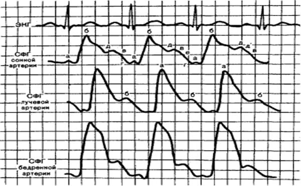Рис 18. Одновременная регистрация ЭКГ и сфигмограммы.