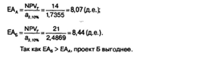 Пример 7.8. Рассчитаем эквивалентный аннуитет по инвестицион-