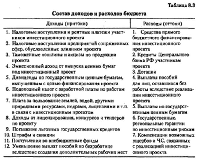 бюджетной эффективности, приведены в табл. 8.3. Необходимо также