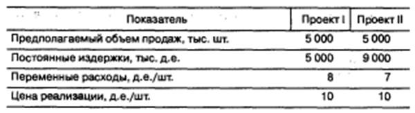 Пример 11.7. Сравнить альтернативные проекты I и II по устойчивости на основе расчета точки безубыточности.