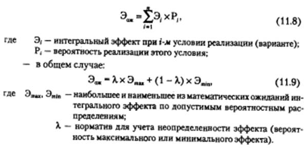 -рассчитаный по формуле (11.8) ожидаемый интегральный эффект может выражаться величиной, которая не проявляется в ркальности ни при каком развитии событий, что затрудняет выявление экономического смысла полученного значения.