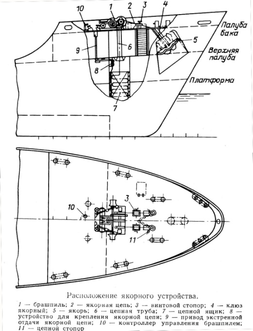 Якорное устройство предназначено для обеспечения надежной стоянки судна в море, на рейде, в других местах, удаленных от берега, путем крепления за грунт.