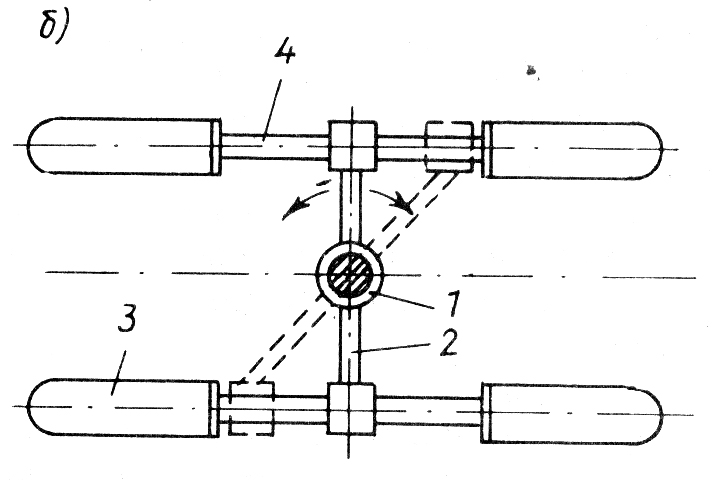 Рули различных типов: а – небалансирный (обычный); б – балансирный; в – полубалансирный; г – подвесной