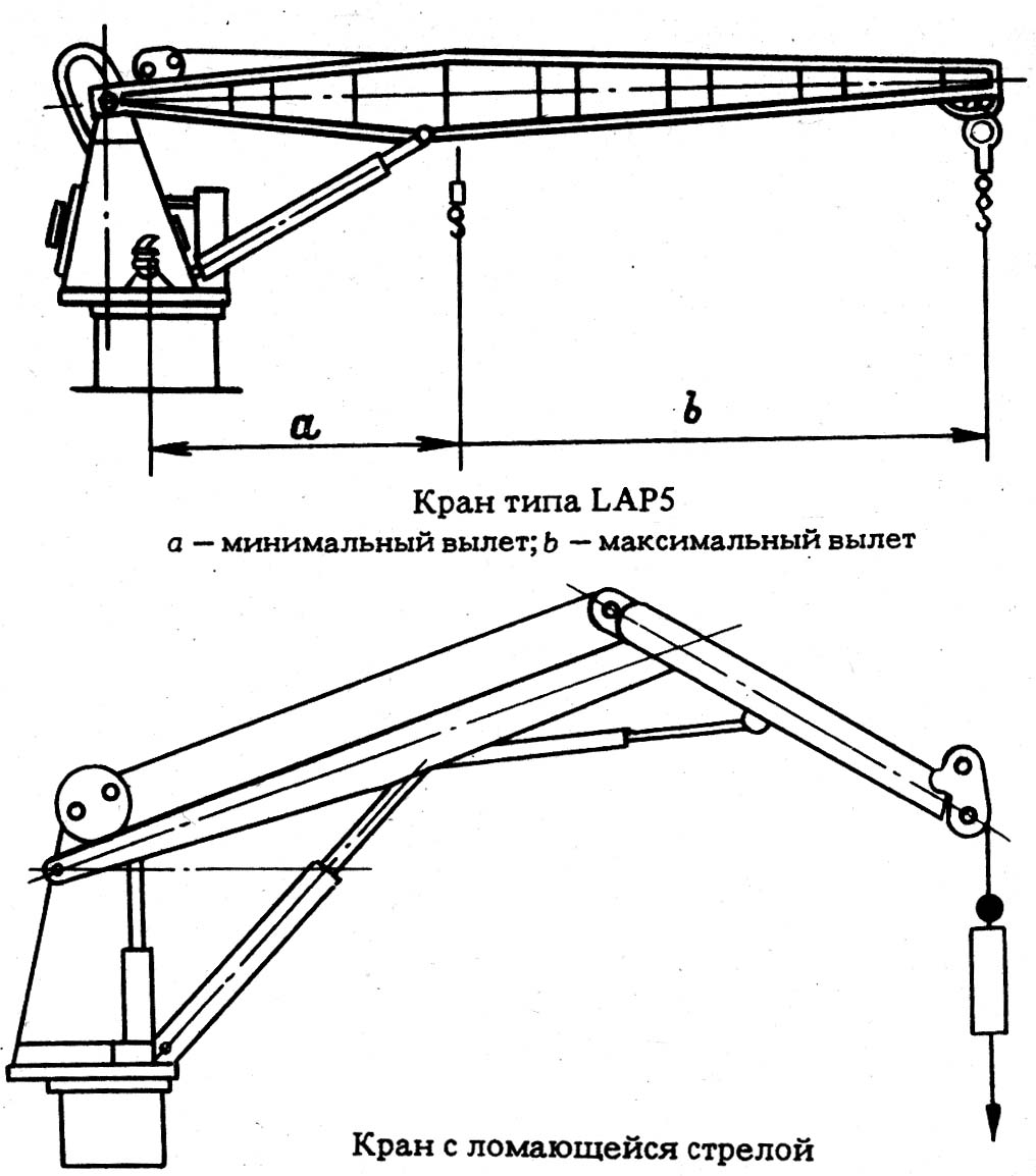 Перемещение груза осуществляют с помощью стального троса – шкентеля, который наматывают на барабан грузовой лебедки. Длина грузовой стрелы, а также длина шкентеля должна обеспечивать подъем и опускание груза из любой точки грузового трюма, а также с расстояния не менее 2 м от борта судна на пирсе (минимальный вылет стрелы). Вылет тяжеловесных стрел должен составлять не менее 4 м.