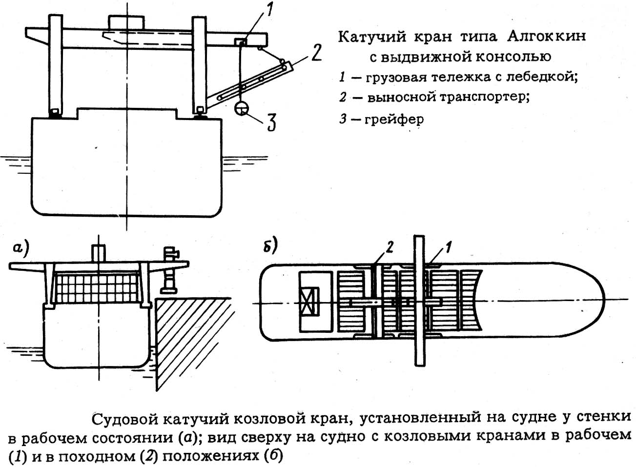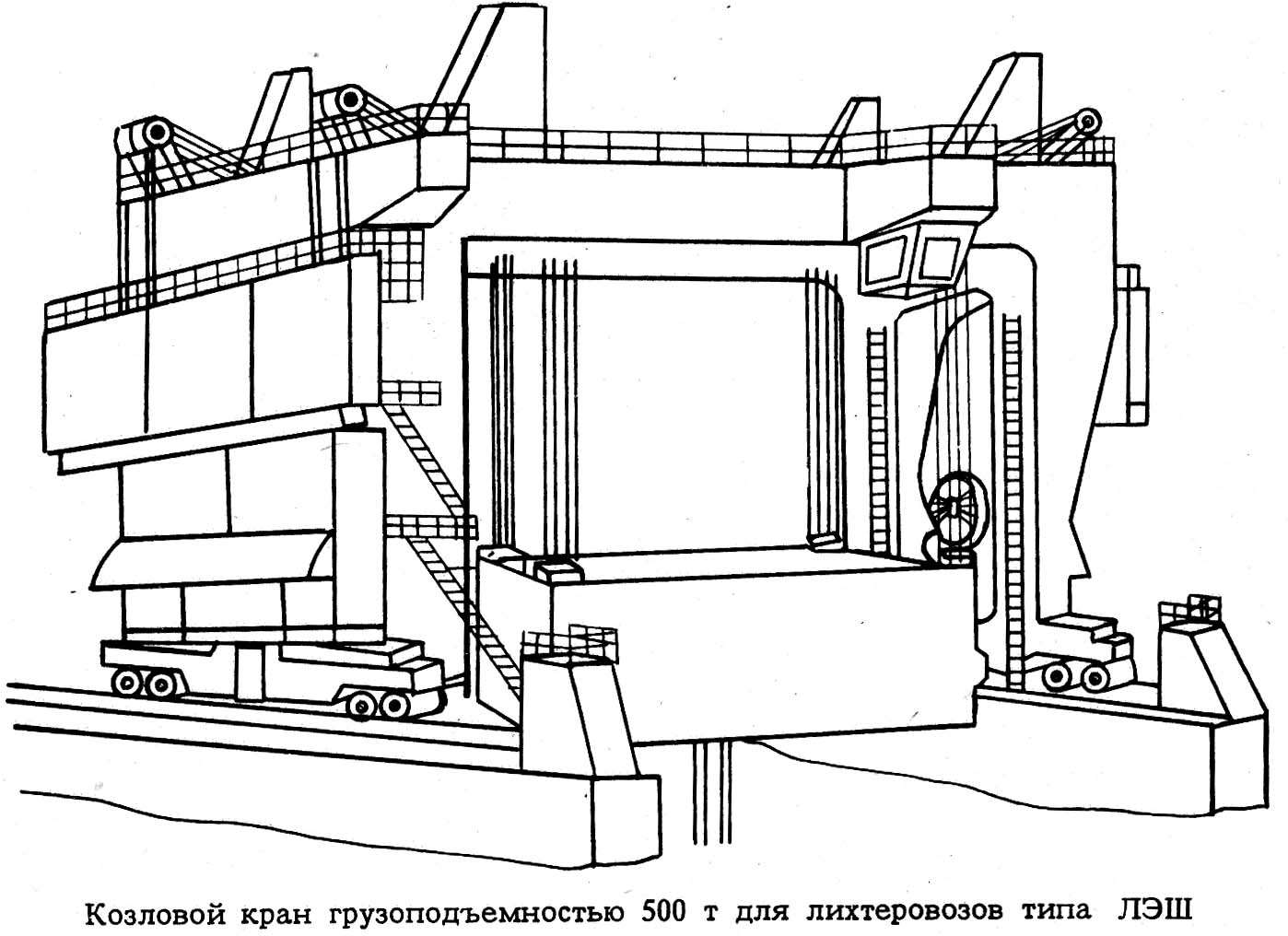 Наибольшую грузоподъемность (500 т) имеют перемещающиеся козловые краны для лихтеров типа ЛЭШ на лихтеровозах. На лихтеровозах с кормовым подъемником весь процесс погрузки осуществляется действием двух устройств: подъемника и транспортной тележки.
