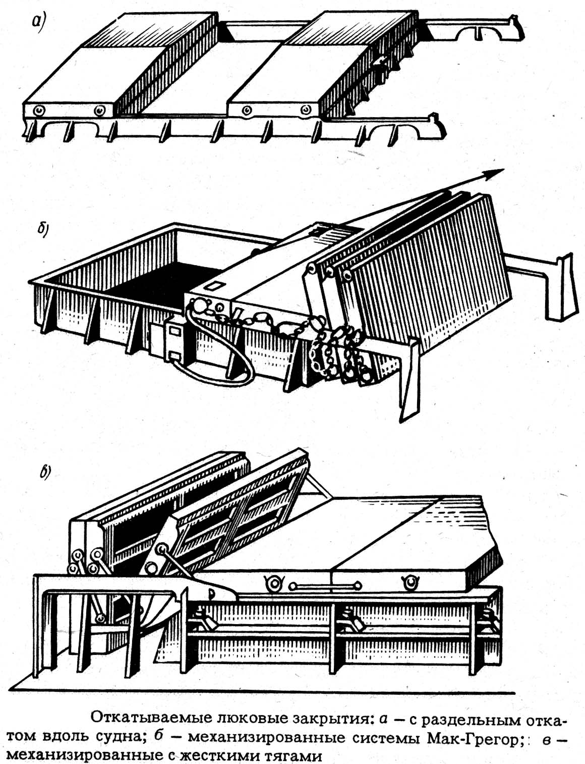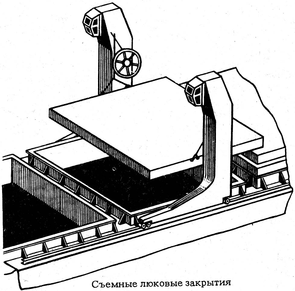 Существенно сокращает время погрузочно-разгрузочных работ механизированное устройство для закрытия грузовых люков, представляющее собой металлические щиты (по 2-8 шт. на 1 люк), которые открываются механизированным способом: с помощью грузовых стрел или кранов или раскатываются с помощью гидравлического привода.