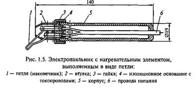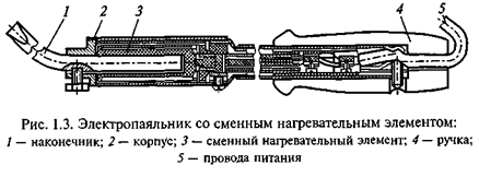 Пайка монтажных проводов с соединителями производится паяльником мощностью 60...90 Вт со сменным нагревательным элементом (рис. 1.3).
