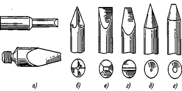 Рис. 1.6. Типы паяльных наконечников (а)
