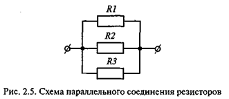 На рис. 2.5 приведена схема параллельного соединения трех резисторов.