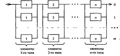 Вероятность того, что произойдет отказ элементов i-го типа, равна произведению вероятностей отказов i-го элемента и всех элементов, его резервирующих, т.е.