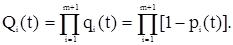 Поскольку функциональные группы элементов соединены последовательно, то вероятность безотказной работы в целом равна произведению вероятностей безотказной работы функциональных групп, т.е.