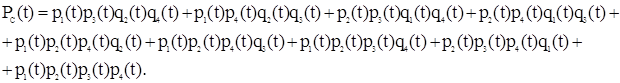 =16, из которых 9 включают как минимум 2 находящихся в работоспособном состоянии элемента и образуют работоспособное подмножество. Таким образом, вероятность безотказной работы системы описывается многочленом