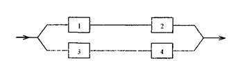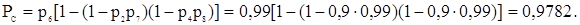 Используя формулы для последовательно и параллельно соединенных элементов, определяем вероятность безотказной работы системы: