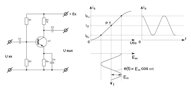 При входном сигнале, имеющем оба полупериода одинаковой амплитуды, для обеспечения сказанного точка покоя должна находиться в середине линейного участка характеристики, что достигается подачей соответствующего напряжения смещения во входную цепь.
