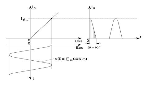 Рис 2.20. Работа усилительного элемента в режиме В.
